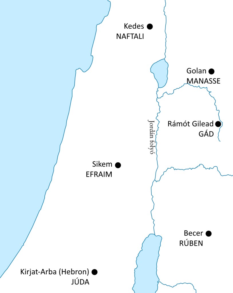 1.) Kánaán földjének elfoglalása után az Úr azt parancsolta Izráelnek, hogy válasszanak hat menedékvárost. Itt találhatott az az izráelita segítséget és menedéket a vérbosszuló rokonok elől, aki nem szándékosan ölt meg egy másik embert (Ex 21,13; Num 35,9–14). Mózes három várost jelölt ki a Jordántól keletre: Becer Rúben törzsében, a Gileád-beli Rámót Gád törzsében és a Básán-beli Gólan Manasse törzsében (Deut 4,41–43). Józsué három további várost jelölt ki a Jordántól nyugatra: Kedest Naftáliban, Sikemet Efraimban és Kirjait-Arbát (Hebron) Júdában (Józs 20,7k).
